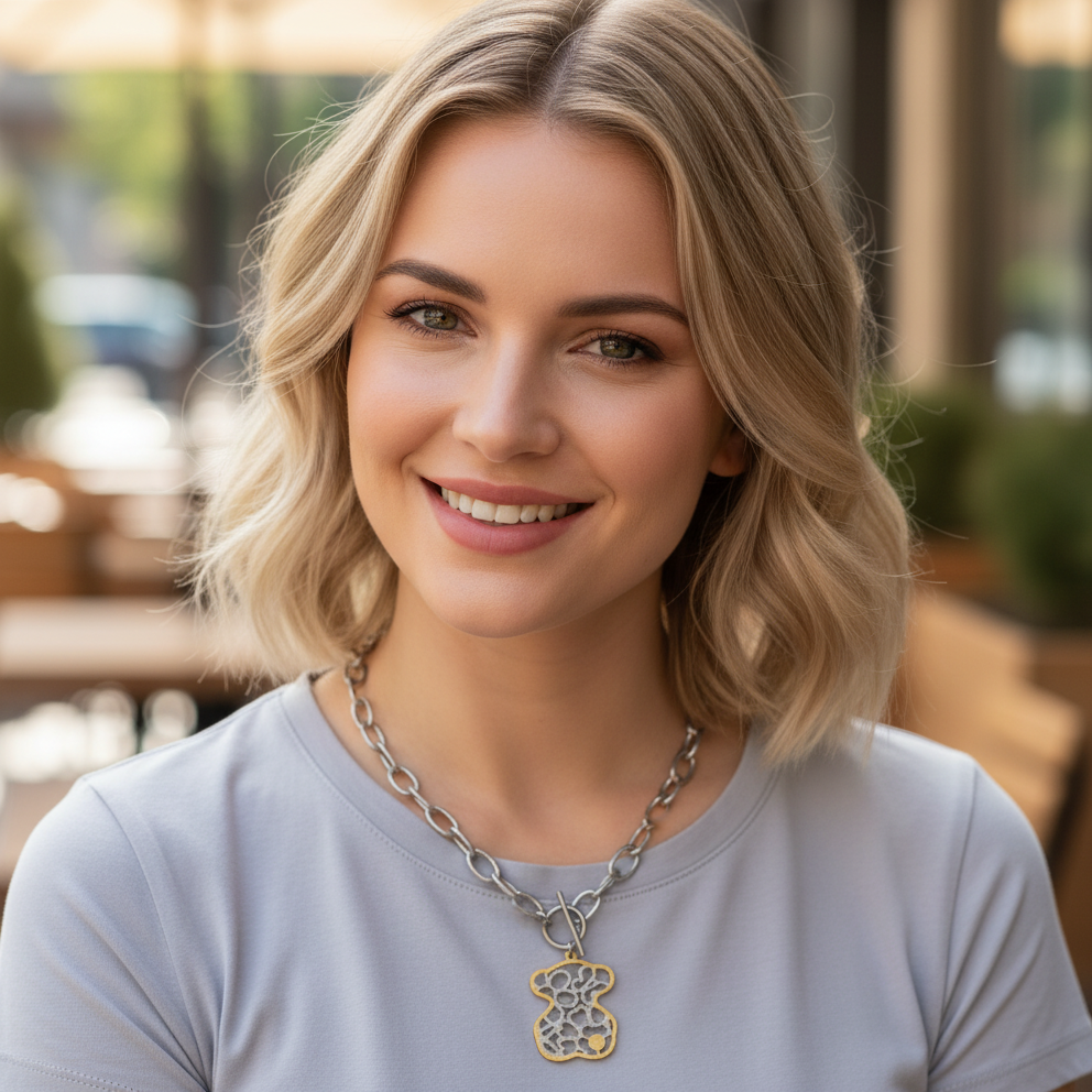 Apaixone-se pelo ternura, otimismo e simplicidade que o Urso simboliza. Este colar é mais que um acessório, é um look para usar no seu dia a dia.