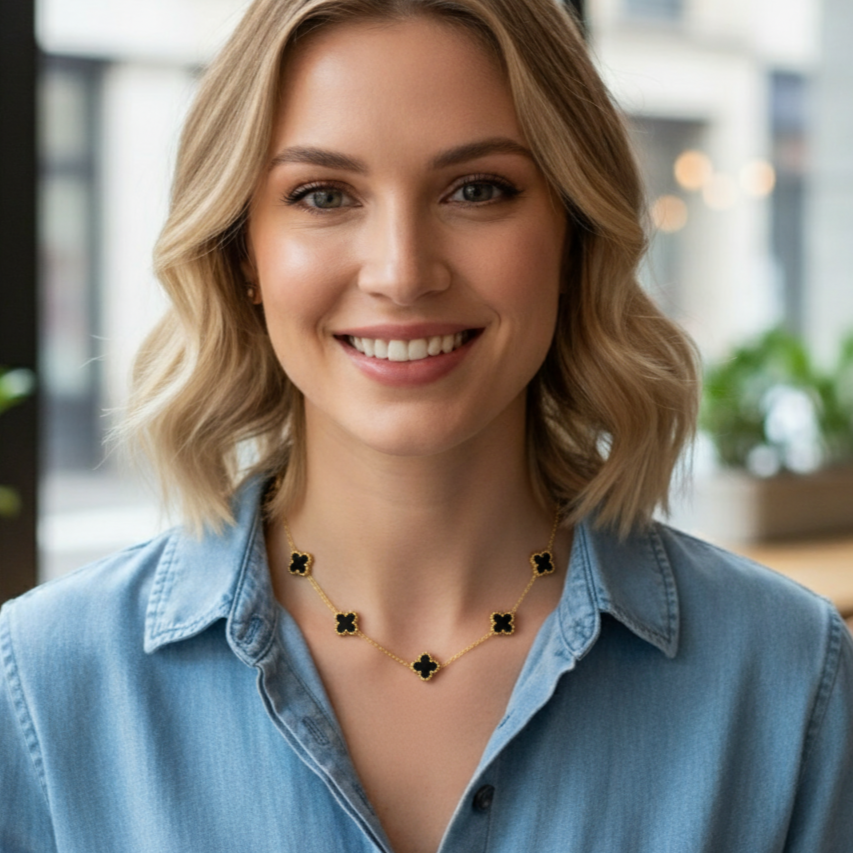 Fio em Aço Inoxidável Dourado "Trevos" Pretos