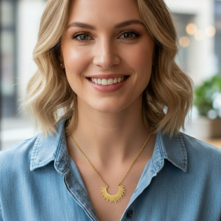 Apaixone-se pela beleza deste fio cheio de significado. O Sol tem um significado espiritual profundo, representando a essência, vitalidade, energia e a força espiritual. Ele simboliza a luz da vida, a iluminação, a renovação e a busca pela autoexpressão e autenticidade. Espiritualmente, o Sol está associado ao poder cósmico, à realização pessoal, à consciência de si mesmo e a uma jornada de autoconhecimento para se tornar quem se veio para ser.