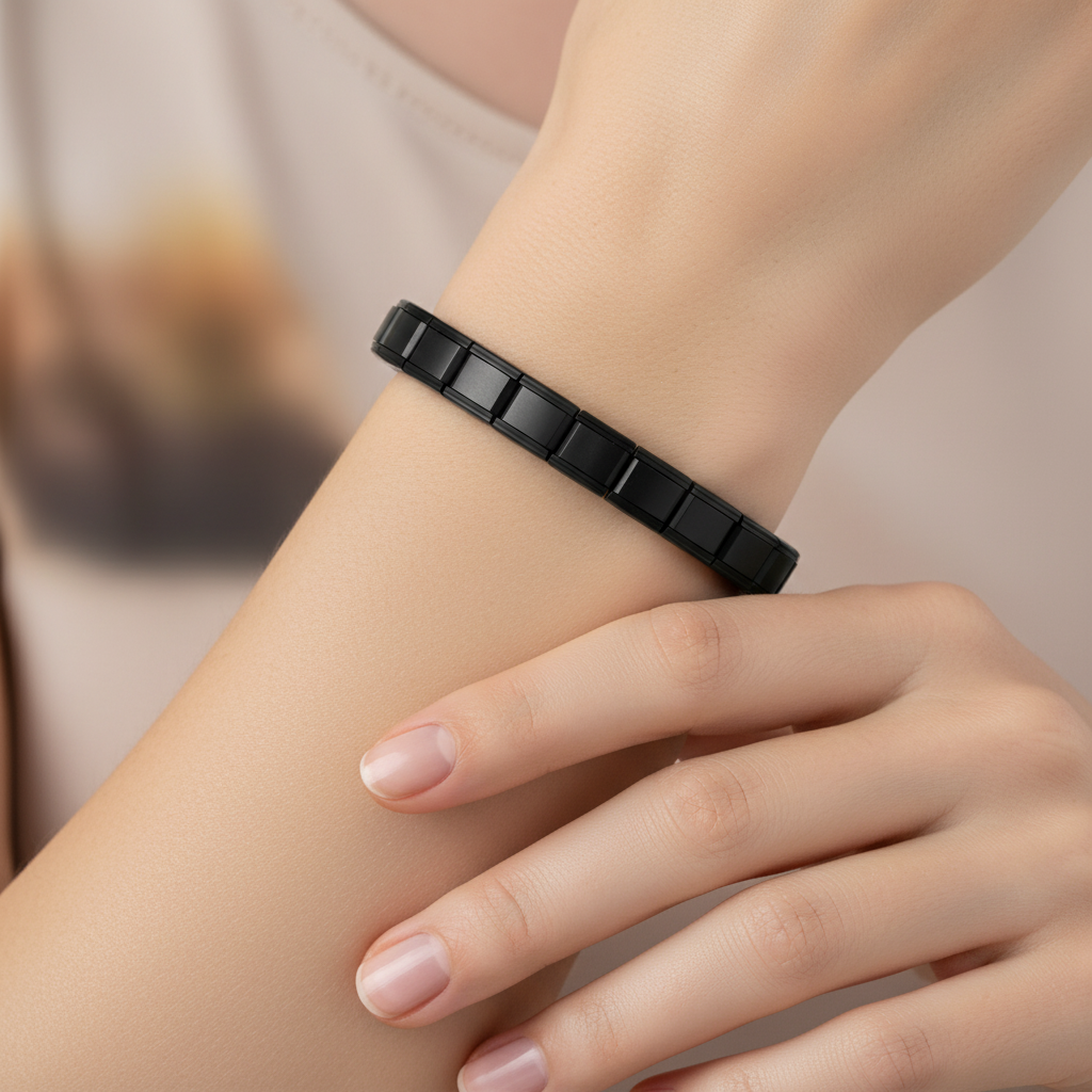 Pulseira Elástica em Aço Inoxidável "Preta"